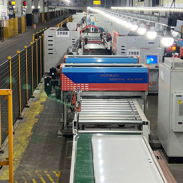 关于我们:公司技术研发部门经过两年的技术攻关,研发出的伺服柔性折弯中心,折弯速度每刀仅需0.2秒,设备可以根据折弯工艺自动上折、下折动作实现圆弧、压死边、各种角度的组合折弯,综合平均效率可达普通同规格数控折弯机3倍以上,为企业节省大量的人工和模具成本。